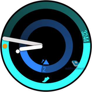 Отдельно отмечу возвращение аппаратного GPS/Глонасс, соответственно, есть полноценная навигация прямо в часах, без смартфона-компаньона. Карты, как и прежде, Here. Функция SOS позволяет передать заданным номерам ваши координаты и сообщение, этого не было на предыдущих моделях. Также в течение часа ваше местоположение будет доступно вашим экстренным номерам. Другой любопытный момент – помимо аппаратного GPS, в этих часах есть аппаратный же барометр, альтиметр, которые используются в спортивных приложениях (наклон, пройденное в горку расстояние), а также могут локально предсказывать погоду. Спидометр показывает вашу актуальную скорость. Интерфейс, работа с часами, предустановленными приложениямиИнтерфейс Circle UI, его еще порой называют Round UI. Логика работы часов строится вокруг управления с помощью ободка. Итак, ободком прокручиваете экраны, по умолчанию вам показывают время. Вращаете вправо и видите свои виджеты, которые установили самостоятельно для нужных приложений. Вращаете влево, и перед вами различные уведомления с телефона, в режиме ожидания желтая точка показывает, что появились новые сообщения.