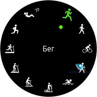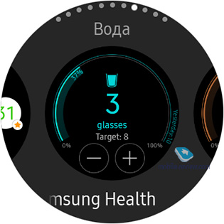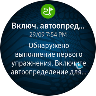 Найдя нужный пункт, иконку, вы нажимаете на нее, дальше можно листать список ободком либо прокручивать страничку. Например, читая сайт или почту, вы ободком крутите лист. Это хорошо, так как экономит время, вы не закрываете экран и всегда видите информацию. Надо понимать, что читать трактаты на часах никто не будет, это может быть SMS или что-то небольшое, но не заметный по размеру текст. Уже существует более десяти тысяч приложений для часов, но большая часть из них просто не нужна. Да и попытка найти объявленные 10000 приложений в магазине обернулась полным фиаско, от силы несколько сотен, большая часть из которых – это варианты оформления основного экрана с циферблатом. Год от года число приложений растет, но реально нужных почти нет, в часах есть все изначально. Обратите внимание, как выглядят циферблаты по умолчанию, каждый из них можно дополнительно настроить, изменить цвета, например, с черного на белый и наоборот. Уведомления приходят на часы в привычной манере, плюс есть S Health (часы могут измерять шаги, пульс (как постоянно, так и по запросу). Для занимающихся спортом будет интересно то, что добавили все распространенные варианты тренировок, например, можно в меню найти не только привычный бег, велосипед, но также пилатес, работу со штангой и тому подобное. Про водные тренировки расскажу чуть ниже.
