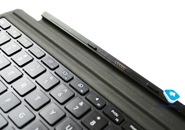 На верхней грани находится кнопка включения, на нижней – контакты для подключения клавиатуры. Несмотря на магнитное крепление, пытаться поднять планшет за пристегнутую клавиатуру не стоит – она не выдержит его веса и оторвется.