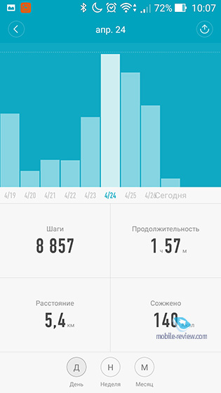 Вся информация находится в приложении Mi Fit, программа аккуратная и уже русифицированная, доступна для Android и iOS, есть синхронизация с Google Fit и Apple Health. При желании можно посмотреть графики сна или шагов. Кстати, данные от весов Mi Scale также загружаются в это приложение.