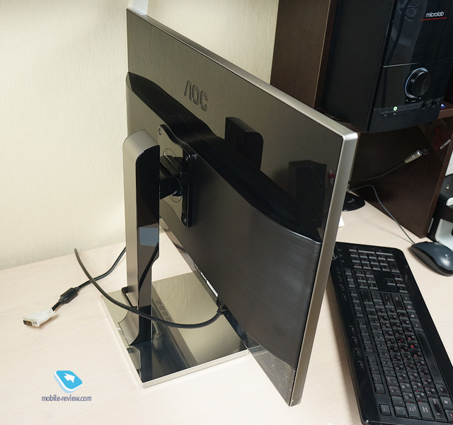 Насколько я знаю, модель продается только в черном исполнении. Боковины серебристые. С обратной стороны – глянец. К качеству претензий нет: во время теста, как бы я ни вертел монитор, никаких скрипов не появилось.