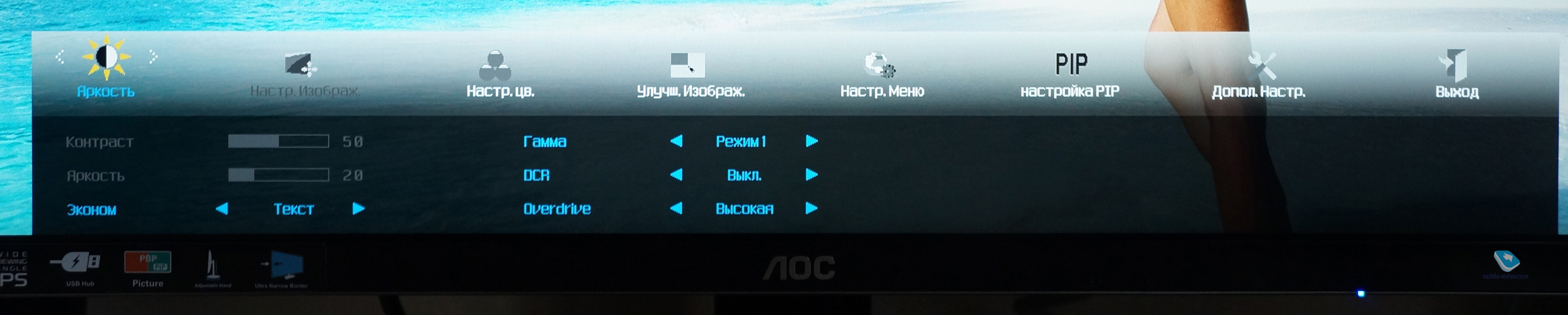 В компании AOC выделяют тонкие рамки монитора: сверху, справа и слева они по 9 мм, а снизу рамка около 18 мм. Выглядит это неплохо, однако особенного «вау-эффекта» лично у меня не вызывает.