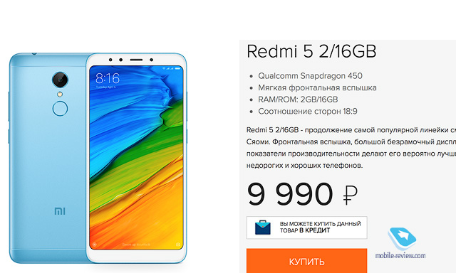 Для примера приведу стоимость Redmi 5 2/16ГБ в "МегаФоне", она составляет 12 990 рублей.