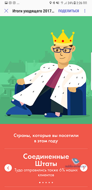 А вот пример намного более интересный, это очень подробная статистика, которую подготовил Raiffaisen, можно увидеть месяцы, когда вы были активны, куда вы ездили, сколько тратили на основные категории товаров в сравнении с другими клиентами банка. В скриншотах должны быть цифры, но мы их убрали, чтобы избежать ненужных обсуждений.