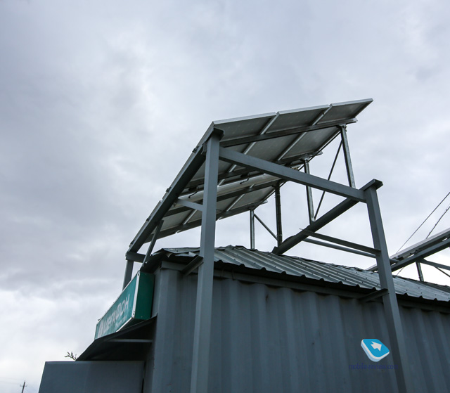 В горах использование альтернативных источников энергии необходимо, так как это сокращает необходимость постоянно задействовать дизель-генератор, ведь электричества извне тут зачастую нет или с ним происходят сбои. Мощность этой станции - 5 кВт, в среднем пиковая нагрузка - 1.5 кВт, что позволяет почти полностью обходиться солнечными батареями. Но именно в Бадахшане инженеры "МегаФона" придумали технологию, которая затем появилась у нас на Кавказе, где условия сходны с Таджикистаном, там также горы. Обычно аккумуляторы для базовой станции устанавливают в помещении, но в горах летом очень жарко, а зимой очень холодно. Необходимо поддерживать одинаковую температуру в помещении, на что тратится драгоценная энергия. Поэтому инженеры предложили прятать аккумуляторы в грунт. Вырывается яма глубиной два метра, там создается герметичный контейнер с выходом для газов в случае аварии (этакие печные трубы, что идут вверх). Заглубление батарей в грунт позволяет избавиться от необходимости охлаждать или нагревать помещение, то есть не тратится энергия.