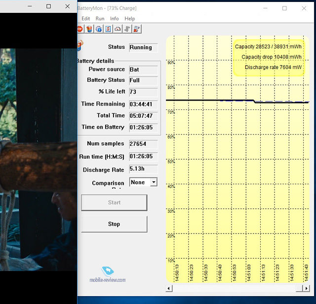 Dell Vostro 5471 – идеальный ноутбук для «Сапсана», время в пути которого составляет 4 часа. Например, просмотр видео на максимальной яркости и громкости с выключенным Wi-Fi составляет 5 часов 7 минут: