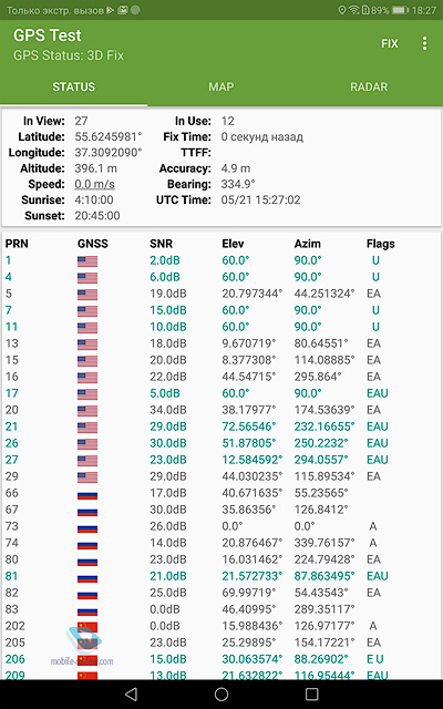 Планшеты работают с 4G CAT 18/13: 1/3/4/5/6/7/8/12/17/18/19/20/26, на борту слот под сим-карты формата nano. Беспроводная сеть Wi-Fi имеет стандарты a/b/g/n/ac DualBand, Bluetooth версии 4.2 (A2DP, LE, EDR, aptX). Для навигации используются GPS, A-GPS, BDS, ГЛОНАСС. С точки зрения навигации рекомендовать MediaPad M5 8.4 не стал бы: точность у младшей постоянно прыгала от 5 до 20 метров, у старшей – от 5 метров (более-менее стабильно); чувствительность «8.4» до 12 спутников, у «10.8» – до 20. M5 8.4