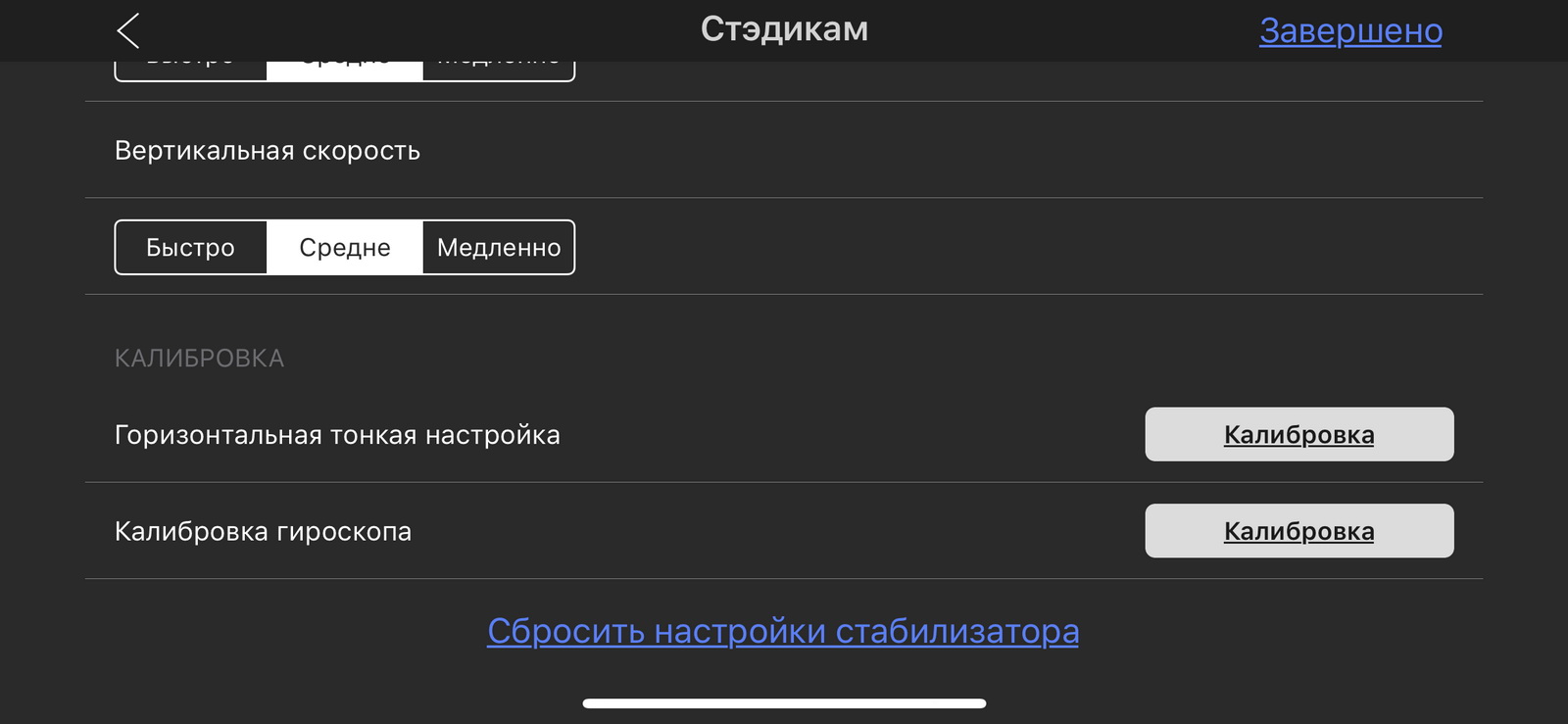 В глобальных настройках можно выбрать скорость прокрутки джойстиком, откалибровать горизонт и гироскоп. Последние параметры вам пригодятся в случае, если гимбал не смог откалибровать положение осей.