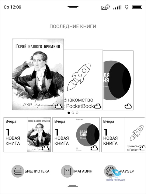 Но большинство, скорее всего, будет загружать книги по кабелю, тут все просто. Подключаетесь и передаете книги на устройство. Мне в комментариях писали, что в PocketBook есть проблема с подключением к ПК, иногда оно теряется. Но за десяток раз, что пробовал это сделать, ничего такого не испытал. Возможно, что в каких-то конфигурациях и системах это случается, но не видел такого. В облаке хранятся ваши книги, а если вы пользуетесь на Android/iOS приложением от PocketBook, то можно продолжить чтение ровно с того места, где вы остановились на вашей книге. Удобно? Безусловно. Для себя я тут вижу такое применение, если хотите, сценарий: не брать книжку в короткие поездки, но иметь возможность при желании дочитать текст с планшета или смартфона. Это однозначный плюс. Все книги в облаке не хранятся, но места достаточно для того, чтобы хранить открытые книги плюс все, что вы купили в фирменном магазине компании (эти книги не нужно хранить, они уже есть в облаке, как вы понимаете). Программное обеспечение – особенности PocketBookВ мире всегда было два подхода, первый – максимальное упрощение возможностей устройств, когда они работают, как задумал разработчик, но не факт, что это подходит именно вам. Второй подход позволяет настроить все под себя, но многие ленятся заниматься этим. В PocketBook создали читалку, которая ближе ко второму подходу. Из минусов отмечу то, что если в Oasis можно потянуть сверху экран в любом месте, то в PocketBook – только то место, где обозначен элемент управления, что одновременно и логично, и консервативно.