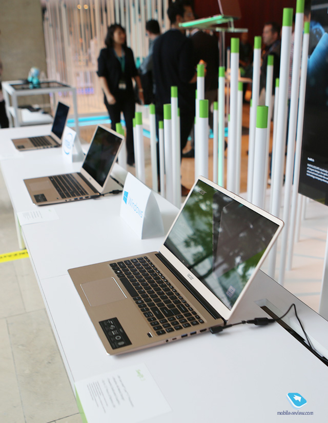 Ноутбуки Acer Swift 3 и 5Рассказывать подробно про 3-ю серию не буду, разные конфигурации и привычный дизайн, хорошие рабочие машинки. Мне скорее интересна модель Swift 5 (а есть еще 7-я серия, но в России ее нет), она выступает как топовое решение и предложена в новом дизайне. Минус в том, что видел только муляж, ноутбук появится в России в ноябре, про цены и вовсе рано говорить.