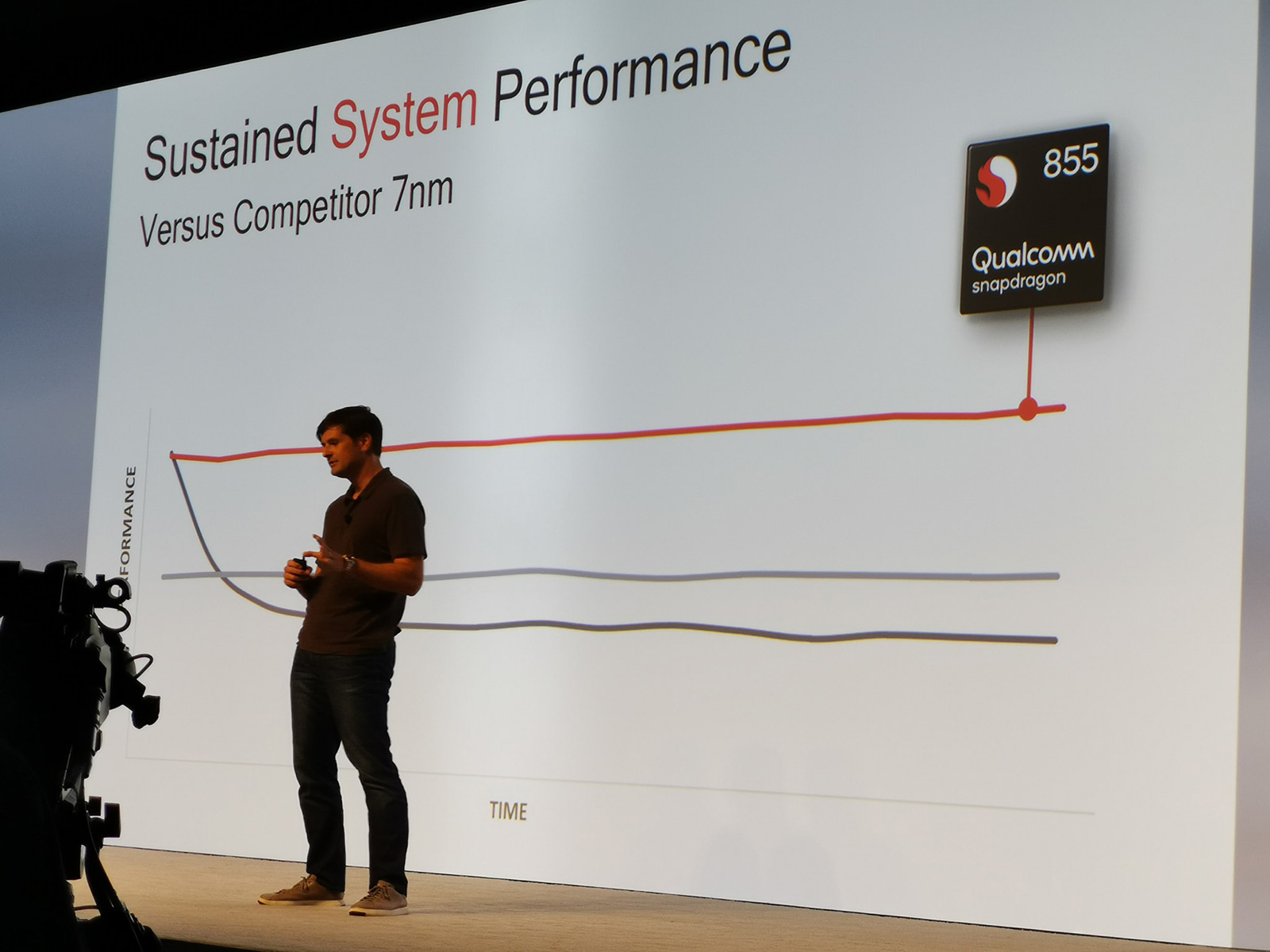За фото спасибо Вести.Net Конечно, в Qualcomm сказали и о возросшей производительности нового Snapdragon 855, который в три раза превосходит по данному показателю текущий чипсет Snapdragon 845. Была доработана и система искусственного интеллекта, которая лучше аналогичных решений у конкурентов.