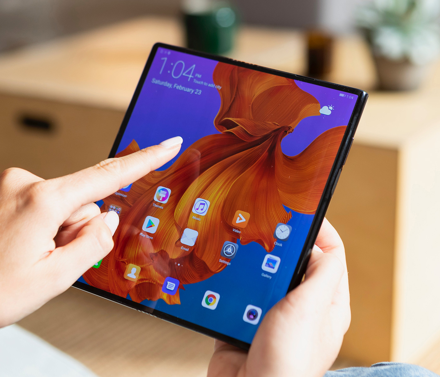 Это приводит нас к тому, что защита экрана в Mate X от случайных повреждений де-факто на уровень ниже, так как любой острый предмет оставит на нем следы. В Huawei это понимают, поэтому специально выпустили чехол для аппарата, но предусмотрительно не говорят о том, насколько он увеличивает размеры. Во многом Mate X создавался как смартфон не под реальные сценарии использования, а для того, чтобы поразить воображение и сделать “лучше”, чем у Samsung. Добиться мнимого превосходства в тех или иных характеристиках на бумаге. Больше экран в сложенном состоянии, больше в разложенном. В Mate X основной экран, когда он раскрыт, 8 дюймов (8:7.1, 2480x2200 точек), в закрытом состоянии основной экран 6.6 дюйма (19.5x9, 2480x1148 точек), задний экран 6.4 дюйма (25:9, 2480x892 точки).