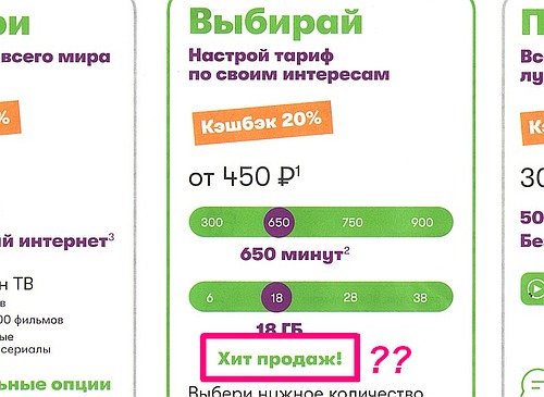 Бывает и забавное. Распечатка тарифов датирована 4 марта 2019, дата появления тарифов в продаже — 11 марта 2019 года. Тариф «Выбирай» стал хитом продаж за неделю до того, как начал продаваться, ишь ты! Или «МегаФон» овладел машиной времени и утаил от широкой общественности этот уникальный know-how? Впрочем, маркетологи правы: самый дешёвый вариант пакетного тарифа просто обречён на почётное звание «Хит продаж». Кассандрой быть необязательно, и можно смело объявить о звании «Хит продаж» заранее, всё равно не ошибёшься. Конкретно по ценам в Московском регионе я ничего особо «криминального» не увидел. В региональных версиях возможны более агрессивные повышения цен, сейчас мы всё чаще наблюдаем такое у всех операторов. Да, некоторое подорожание присутствует и в Московском регионе. Из самого критичного для большей части потребителей и, соответственно, самого финансово значимого для оператора — повышение минимальной цены пакетного тарифа с прежних 400 до 450 руб./месяц (Москва). А по факту подорожание получилось больше, чем на эти 50 руб., в новой версии тарифа исчез пакет 300 SMS, что означает ещё некоторое подорожание для немалого числа абонентов. Что бы там ни писали горячие поклонники всяких вацапчиков про всеобще-тотальный переход на мессенджеры, время от времени отправлять SMS почти всем приходится. Особенности тарифовПожалуй, это будет самый интересный для вас раздел обзора (надеюсь). Цены на «тарифной витрине» — штука важная, но не менее важны детали и внутритарифные механизмы действия этих цен. Здесь, как говорится, возможны варианты. Постарался собрать для вас своеобразный «справочник» и перечислить всё то, что тем или иным образом влияет или может повлиять на реальные траты. Тарифный конструктор — глобальное изменение в линейке «МегаФона». Теперь тариф «Выбирай» как бы объединяет в себе под общим названием все промежуточные варианты с возможностью выбора подходящих пакетов минут и гигабайт трафика. Тарифный конструктор — однозначно великое благо для многих абонентов. Оператор не станет плодить большое число отдельных тарифов для удовлетворения небольших групп, это непрактично и «замыливает» выбор тарифа для нового клиента. А в конструкторе всякие тарифные маргинальности реализовать нетрудно. Например, вариант тарифа 300 минут / 38 ГБ я с трудом могу представить себе на витрине, хотя людей с таким профилем потребления немало. Обратите внимание: менять наполнение пакетов можно в любой момент, но при увеличении объёмов пакетов нужный трафик добавляется сразу, и абонплата, соответственно, пересчитывается и снимается тоже сразу. А при уменьшении объёмов пакетов (если вы решили лишнего не платить) изменения вступят в силу только со следующего биллингового периода. Про 30 дней и посуточную оплату. Абонентская плата списывается каждые 30 дней вместо одного раза в месяц, теперь придётся оплачивать в среднем на 0.4 суток в месяц (на 5 суток в год) больше. Потеря определённо не смертельная, но неудобно, так как начинает «плавать» привычная дата списания абонплаты. Первый месяц после подключения абонплату снимают посуточно по другим причинам. Скорее всего, оператор позаботился о том, чтобы сделать цену подключения максимально доступной. Далее, если забыли/прозевали дату ежемесячного списания, а денег на балансе не хватает, то абонентка начина