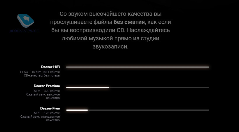 Еще одним важным преимуществом Deezer, которое пока уникально для российского рынка, является прослушивание музыки в lossless-форматах (FLAC или ALAC). Lossless означает «без потерь» – это высокое качество музыки, схожее с CD-диском. Правда, подписка Deezer Hi-Fi с этими форматами будет стоить гораздо дороже – 339 руб./мес. без возможности подключить «семью». На смартфонах это не имеет особого смысла, за редким исключением. Но поддержка сервисом сетевых музыкальных проигрывателей (Bang&Olufsen, Harman Kardon, Sonos, Bose, Denon, Onkyo, Sony, Yamaha, LG, Samsung и других) придется в этом случае ну очень кстати. По цене менее одного CD в месяц можно хоть каждый день слушать что-то новое на домашней аудиосистеме. В высоком качестве доступна почти вся медиатека сервиса – 53 миллиона песен из 55.