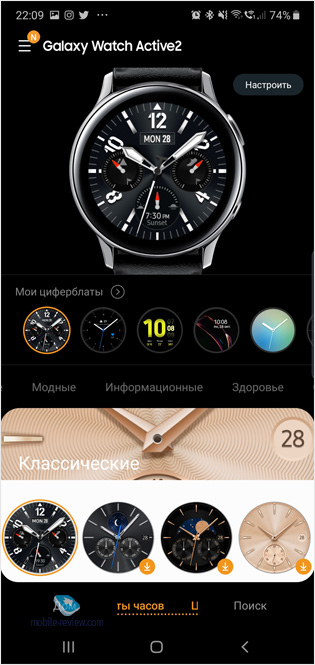 Магазин приложений доступен прямо на часах, то есть вы можете загрузить приложения напрямую, что очень и очень хорошо, часы в полном смысле становятся независимыми от смартфона. Приложение на смартфоне – Galaxy WearableПри первой настройке часов их нужно связать со смартфоном, настроить часы без такого подключения невозможно.