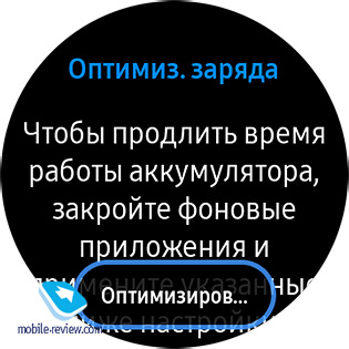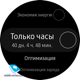 АккумуляторВ часах Li-Ion батарея 230 мАч. В Samsung заявляют примерно 2-3 дня работы при активном использовании, но тут многое зависит от сценариев, числа уведомлений и яркости экрана. При максимальной яркости часов хватит на два дня с непостоянно включенным экраном. При яркости на 60% это будет два с половиной дня работы. С включенным AlwaysOn Display – до полутора дней (при условии ночного режима, что активируется автоматически и часы засыпают). Если отключить все возможности синхронизации, то часы могут работать с постоянно включенным экраном неделями. Тонкая настройка уведомлений и синхронизации даст вам возможность пользоваться часами так долго, как вам нужно. Время непрерывного воспроизведения музыки из памяти – до 8 часов. Время разговора – около 2 часов. Настольное зарядное устройство беспроводное (стандарт WPC), полное время зарядки – около 2 часов.