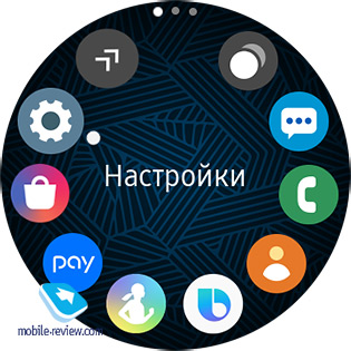 Аппаратная платформаЧасы остались почти полным слепком предыдущих моделей, в них 768 МБ оперативной памяти (этого хватает за глаза, ни разу не видел, чтобы что-то тормозило или приложения вылетали), 4 ГБ встроенной памяти (сюда можно загрузить свои картинки или музыку). Используется двухъядерный процессор Exynos 9110 с тактовой частотой 1.15 ГГц, он чуть быстрее предыдущего поколения. Часы оснащены следующими датчиками: ускорения, гироскоп, барометр, датчик пульса. Отдельно отмечу наличие аппаратного GPS/ГЛОНАСС, соответственно, есть полноценная навигация прямо в часах, без смартфона-компаньона. Карты, как и прежде, Here. Функция SOS позволяет передать заданным номерам ваши координаты и сообщение, этого не было на предыдущих моделях. Также в течение часа ваше местоположение будет доступно вашим экстренным номерам. Интерфейс, работа с часами, предустановленные программыТут стоит Tizen 4.0.0.3 и первая версия OneUI, не путайте с интерфейсом на смартфонах, тут он ближе к Circle UI предыдущих часов, но отказ от поворотного безеля и управление жестами, видимо, заставили переименовать интерфейс. В круговое меню для приложений можно попасть, нажав нижнюю кнопку, выход на уровень вверх осуществляется верхней клавишей. В меню располагаются ваши приложения, причем кругов с ними может быть несколько. Вы сами сортируете, куда и как поместить ярлыки, чтобы вам было удобно.