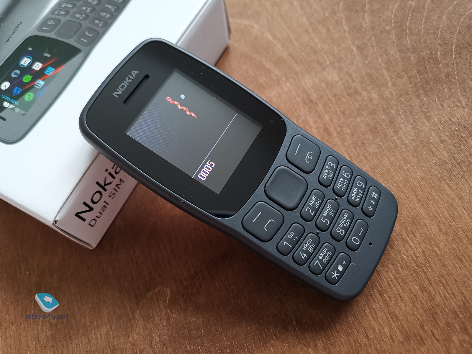 Распаковав коробку с аппаратом и впервые взяв его в руки, первым делом стал искать на нем разъем под тонкую зарядку Nokia, но, оказалось, все не так плохо, в аппарате стандартный microUSB, который расположился на верхнем торце. Там же инженеры HMD разместили фонарик и разъем 3.5 мм, последний нужен для работы гарнитуры, которую вы можете использовать не только для разговоров, но и для прослушивания FM-радио. В руке телефон лежит отлично, первое время немного смущает малый вес устройства, ведь он составляет всего 70.2 грамма вместе с батареей. Да, аккумулятор в аппарате съемный емкостью 800 мАч, с ним Nokia 106 может проработать до 21 дня в режиме ожидания и до 15.7 часа в режиме разговора. Кнопки в телефоне резиновые, так что подвержены истиранию, но с учетом того, что в 2019 году мало кто будет строчить на клавиатуре SMS-ки пачками, проживет она в современных реалиях долго. Экран, который установили в Nokia 106, шлет нам пиксельный привет из прошлого – 1.8 дюйма с разрешением QQVGA. Под стать экрану и телефонная книга аппарата, которая вмещает до 2000 контактов, но полей для записи в ней только два: «Имя» и «Номер». Предустановленные игры тоже не подкачали, сделаны они в лучших традициях первых игр для телефонов, но бесплатная только одна из семи, это «Змейка», за остальные придется заплатить со счета телефона.