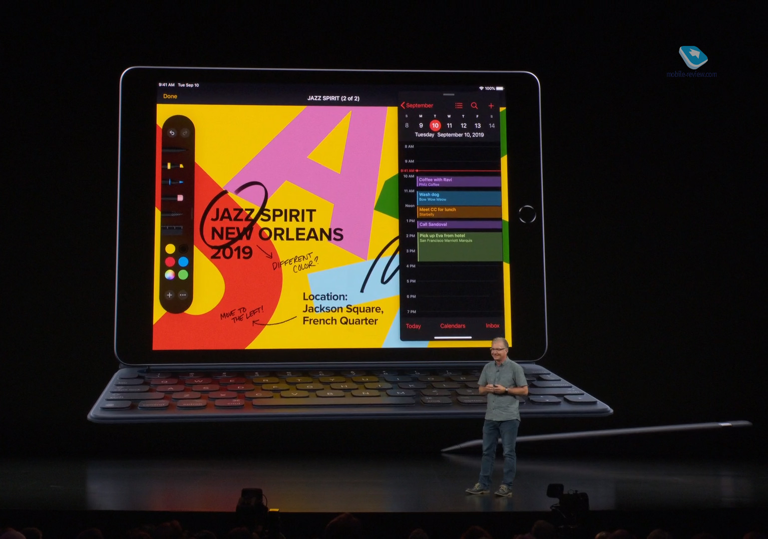 А также компания презентовала обновление базовой модели iPad, в которой из значимых изменений только дисплей 10.2”, ранее 9.7”. Плюс Apple стала продвигать и самый доступный планшет как замену ноутбукам.