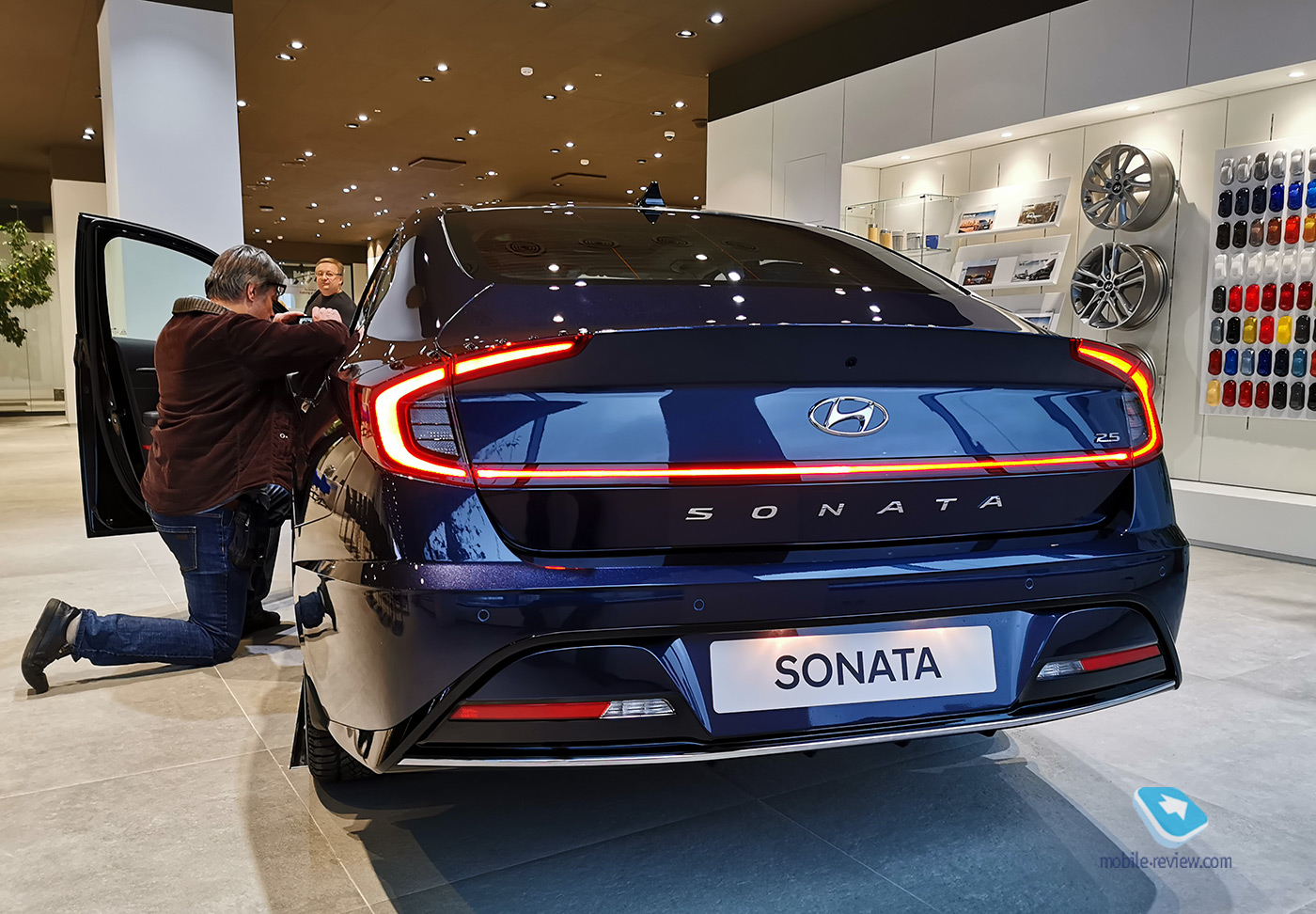 Новая Hyundai Sonata в РоссииВ среду в Москве корейский автопроизводитель официально представил восьмое поколение своего седана Hyundai Sonata. Автомобиль получился весьма интересный, у него абсолютно новый дизайн экстерьера со светодиодными ходовыми огнями, переходящими в серебристые накладки, которые идут вдоль всего кузова. Задние фонари также светодиодные, необычные по форме, делают корму автомобиля узнаваемой. Топовые комплектации Sonata получат виртуальную панель приборов с возможностью вывода изображения с камер, находящихся в боковых зеркалах, в колодцы приборов. Также максимальным версиям будут доступны адаптивный круиз-контроль, система автоматического торможения и система удержания в полосе движения. Основной экран медиасистемы 10.25” с HD разрешением, теперь на нем одновременно можно выводить до трех приложений, хотя, на мой взгляд, двух обычно вполне достаточно. Привычный рычаг коробки передач корейцы убрали, его место заняли кнопки, так что визуально пространства впереди стало больше. Вообще, в плане объема седан весьма неплох, как и предшествующее поколение, места впереди много, сзади тоже, так что в машине совершенно свободно устроятся четыре взрослых человека.
