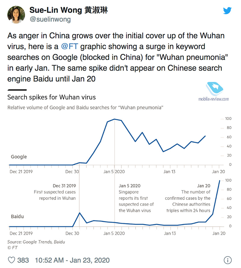 Эти наушники заменяют Buds, но пока те есть на рынке (их уже не производят), цена будет на тысячу рублей выше. На мой взгляд, брать предыдущую версию нет никакого смысла, ориентируйтесь на новые наушники. В них заметно множество мелких улучшений, это отличные универсальные наушники на каждый день для города, ровно так же, как это было и с предыдущей моделью. Обзор тоже появится на неделе. Цензура информации про эпидемию со стороны американских корпорацийУдивительное дело, весь январь я с огромным интересом читал публикации о том, как в Китае борются с распространением информации о вирусе и заболевших, о том, что цензура в этой стране свирепствует и не дает людям узнавать новости. О том, что это один из самых действенных способов остановить панику, почти никто не писал. Стереотип восприятия Китая таков, что цензура прочно укоренилась в головах у западных журналистов, и это первое, что всплывает в разрезе практически любой темы.