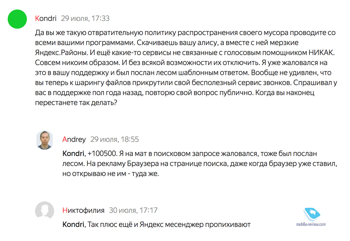 Приложение запустили 15 июня, но, судя по всему, пользователи не горели желанием его устанавливать, и чтобы как-то исправить ситуацию, в "Яндексе" поступили просто - сделали это приложение частью "Яндекс.Диска". Почему видеозвонки добавили в мессенджер? Ответа на этот вопрос нет, видимо, это единственный продукт "Яндекса", в котором менеджеры согласились на этот эксперимент. В лицензионном соглашении для приложений "Яндекса" есть незамысловатый пункт, что пользователь соглашается и дает разрешение на установку приложений без своего дополнительного согласия, в том числе приложений сторонних компаний. Это плохая практика, и раньше в "Яндексе" утверждали, что это происки юристов, просто так на всякий случай. И кивали с большим пониманием, что юристы это вот такие люди, а мы за вас горой и никогда так поступать с вами не будем. Поддержка "Яндекса" разъяренным пользователям, которые не просили никакой "Телемост", сообщала радостно, что им стоит все-таки попробовать.