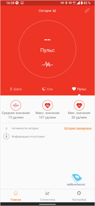 Как уже было отмечено, синхронизация данных со смартфоном осуществляется при помощи приложения Canyon Life, оно доступно на Android (версия 4.4+) и iOS (9.0+). Первое сопряжение происходит довольно быстро, после него нужно задать в настройках приложения свои данные (пол, рост, вес) и выбрать руку, на которой будут носиться часы. Доступна активация по жесту поднятия руки, сами жесты в приложении не описаны, было бы полезно. Считывание пульса в Canyon Wasabi доступно как в режиме тренировок, так и в заданном пользователем временном промежутке и с выбранным интервалом. Само собой, такие устройства не являются медицинскими, они дают лишь примерную картину ЧСС. Расхождение с показателями Mi Band 4 – в пределах 5%, с результатами ручного замера – примерно в том же диапазоне. В приложении три экрана: главная страница с данными об активности (шаги, калории, время активности), сне и пульсе. Чуть ниже – панель с данными о проведённых сегодня тренировках. На втором экране выводится статистика по этим же параметрам за выбранный срок. Третий экран содержит экран обновления ПО и настройки сопряжённого устройства. Часы очень требовательны к настройкам смартфона или планшета, если активен режим энергосбережения или оптимизации, то это может повлиять на процесс синхронизации. Конечно, можно на время тренировки и отключить все указанные режимы на устройстве, но это дополнительные шаги, плюс не все пользователи знают, где находятся соответствующие пункты меню. В процессе тестирования «прилетело» обновление, после которого стабильность соединения улучшилась, по крайней мере, при соединении с моим основным смартфоном проблема не повторилась.