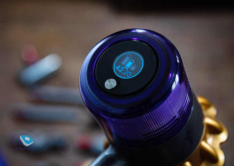 Есть субъективный момент с точки зрения органов управления. Кнопку запуска пылесоса необходимо всё время держать. Да, это экономит заряд аккумулятора, и всё же в таком зафиксированном положении корпус пылесоса со временем начинает чуть оттягивать руку, сказываются вес и невозможность поменять положение пальцев. И если мне это доставило лишь мимолётное неудобство, то супруга отметила, что длительная уборка, особенно коврового покрытия, требует либо смены руки, либо перерыва. В этом плане у одной из моделей Xiaomi эргономика смотрится более выигрышно, хотя автономность хуже. Конечно, в автономности кроется ещё один сомнительный момент, присущий беспроводным вертикальным пылесосам как классу. За немаленькие деньги такие модели могут проработать максимум час от полностью заряженного аккумулятора, причём в режиме самой маленькой мощности. Изначально, ещё до того, как ко мне приехал первый китайский пылесос, именно этот пункт вызывал у меня изрядную долю скептицизма. Со временем я понял, что в случае с Dyson V11 мне в целом хватает часа, чтобы обработать полы во всех комнатах, кухне и ванной комнате. Да, изредка переключаю пылесос в режим повышенной мощности, но она требуется лишь совсем в крайних случаях и разряжает пылесос буквально за 10 минут, и это при учёте от 3 до 4,5 часов, необходимых для зарядки. В режиме Med пылесос проработает 40-45 минут, вполне приемлемый показатель для тех случаев, когда нужна мощность побольше. Как совершенно справедливо отметил Эльдар Муртазин в обзоре аналогичного пылесоса от Samsung, с таким форм-фактором меняется сам подход к уборке. Можно выделять 10-15 минут в день на уборку отдельного места или комнаты, более тщательно обрабатывая ковры и мебель, когда есть на то время. Привычки быстро меняются, и больше не хочется два с лишним часа возить за собой пышущий жаром и пылью «чемодан на колёсиках». Не было особого желания и до этого, если честно.