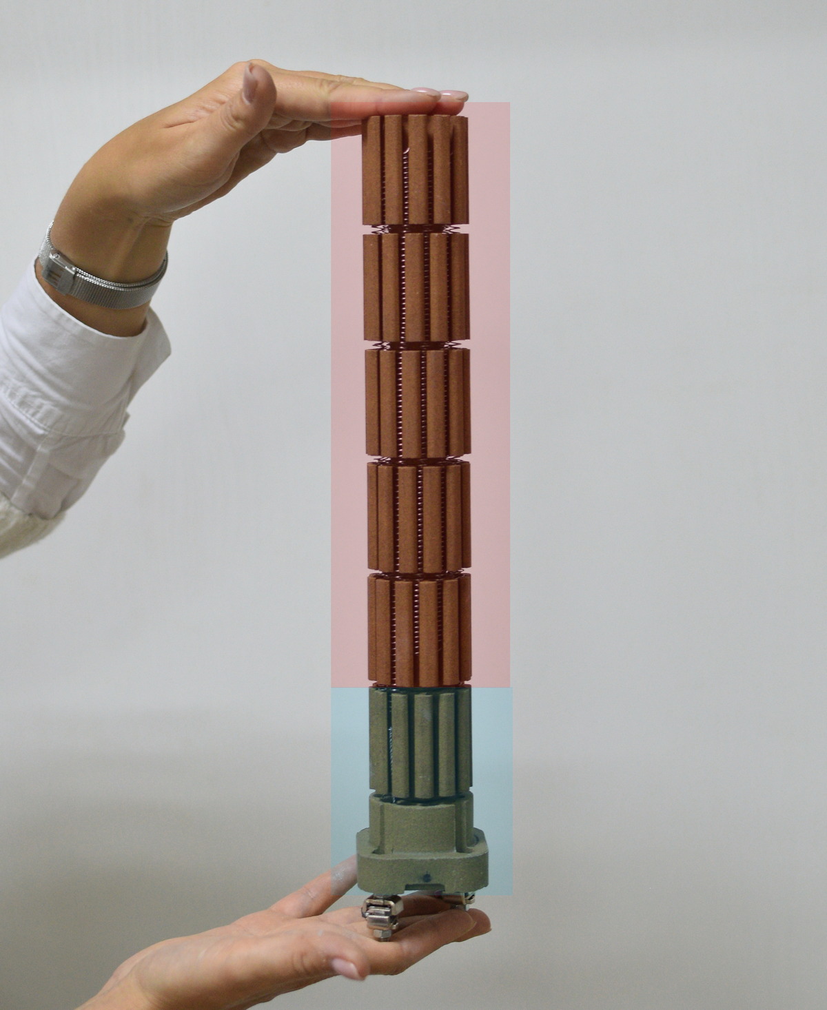Синяя зона остается относительно холодной, основной нагрев ТЭНа приходится выше. Поэтому накипь не «обнимает» основание защитной колбы