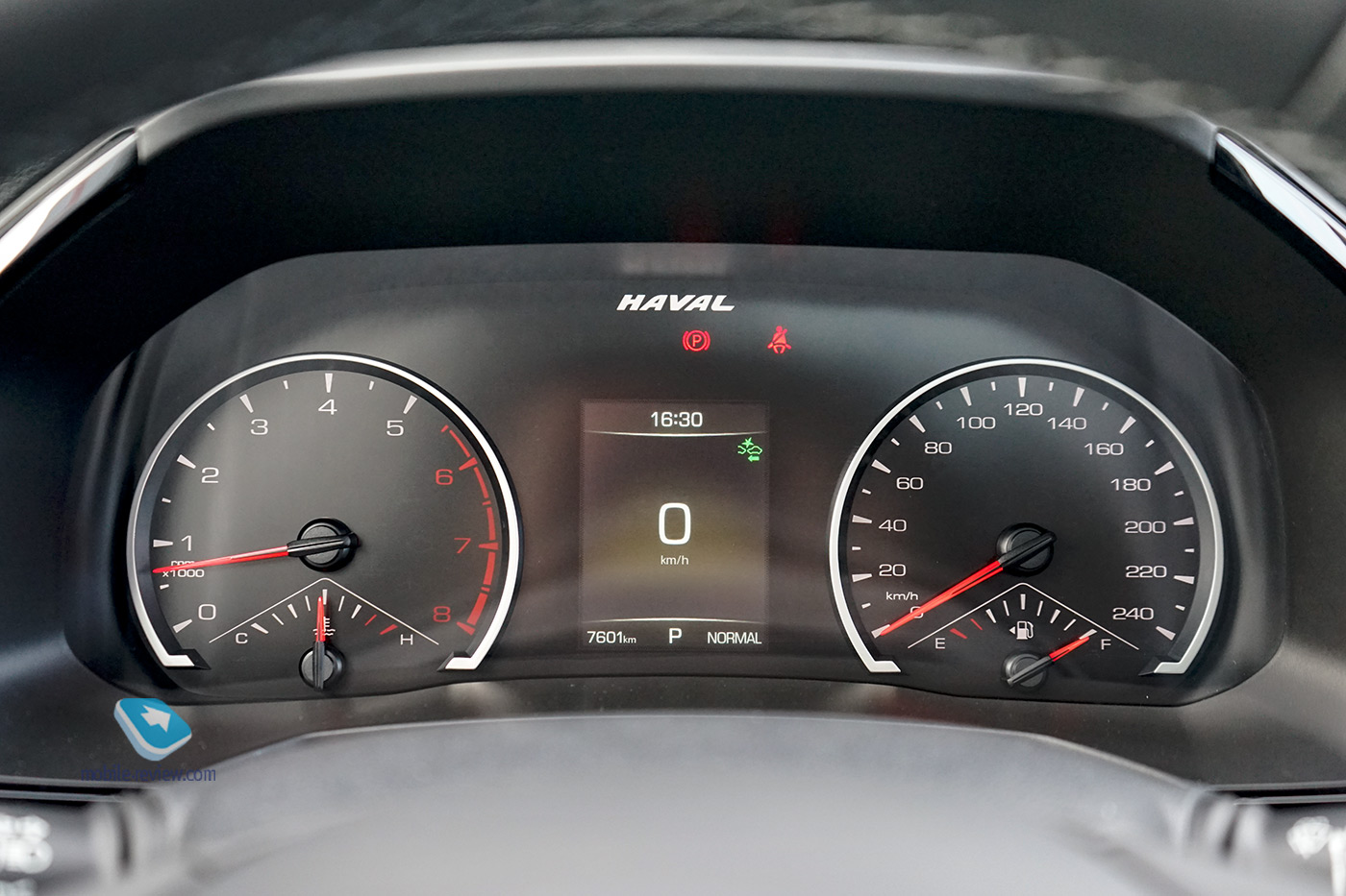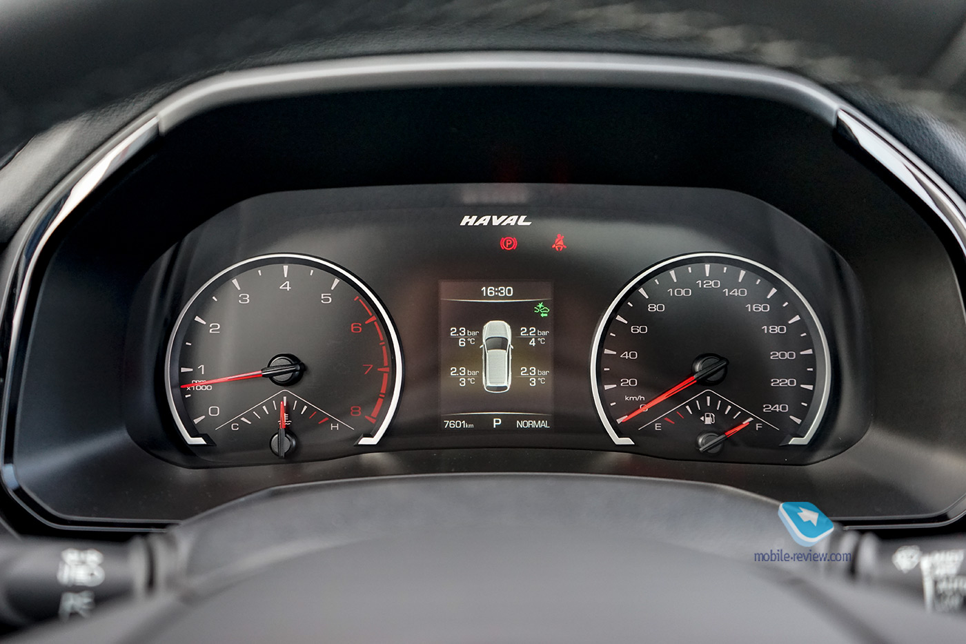 В передней части салона есть два стандартных USB-разъема, но расположены они не совсем привычным образом. Один – в нише под центральным тоннелем, там же находится розетка на 12 вольт. Расположение с первого взгляда неплохое, особенно с учетом того, что там есть прорезиненная площадка, куда можно положить девайсы, но с кресла доступ в нишу затруднен. Есть еще один USB, который находится в корпусе зеркала заднего вида со стороны пассажира, но он удобен только для подключения видеорегистраторов или радар-детекторов, если они, конечно, имеют USB, а не собственный разъем. Также один USB доступен задним пассажирам. Девайсы заряжаются от бортовой сети неспешно, но заряд идет, точнее, ползет, даже когда гаджет под нагрузкой. К работе системы громкой связи Haval F7 вопросов нет, но есть сложности с подключением устройства по Bluetooth. Так, смартфоны на Android у меня подключались, но почему-то не экспортировали в систему автомобиля контакты и списки вызовов, а вот iPhone отваливался от системы через минуту после соединения. В общем, странно, причем такое наблюдал на двух автомобилях, и в чем причина такого поведения системы, не очень понятно. Приборы в F7 классические, читаются хорошо, хотя у спидометра можно было сделать разметку и крупнее. Между тахометром и спидометром находится цветной многофункциональный экран, на который можно вывести цифровой спидометр и дополнительную служебную информацию. Странно, что на этот экранчик производитель не вывел информацию по внешней температуре, она доступна только на экране медиасистемы.