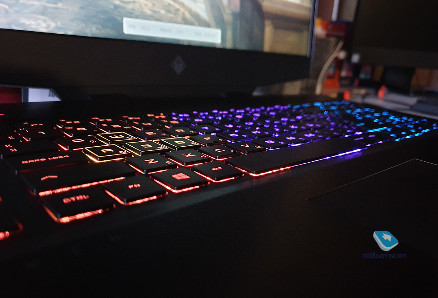 У NVIDIA технология называется G-Sync, а у конкурента от AMD – FreeSync. Разница между технологиями в том, что G-Sync ориентируется на максимальную частоту кадров монитора, а FreeSync – на частоту кадров графики. Соответственно, у FreeSync могут из-за этого возникать разрывы, но, жертвуя изображением, лаг минимальный. Но подобные тонкости важны в основном только игрокам в шутеры с бешеной реакцией Клавиатура и тачпадУ HP OMEN 17-cb0040ur большая полноразмерная клавиатура островного типа, есть цифровой блок, а кнопки стрелок не спарены. В клавиатуре чувствуются элитность и премиальность. Ход клавиш 1.4 мм, отличная упругость и обратная связь при печати. Печатаешь на ноутбуке с удовольствием.