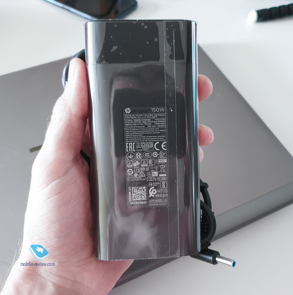 Батарея у ноутбука съёмная. Она одна, горячей замены нет. Заменить батарею можно секунд за 40. Очень удобная вещь, которая позволит продлить срок службы ноутбука. К ноутбуку полагается очень компактный блок питания на 150 Вт. В зависимости от комплектации может быть и блок на 200 Вт. Вместе с проводом блок питания весит 458 г. Это отличный показатель.