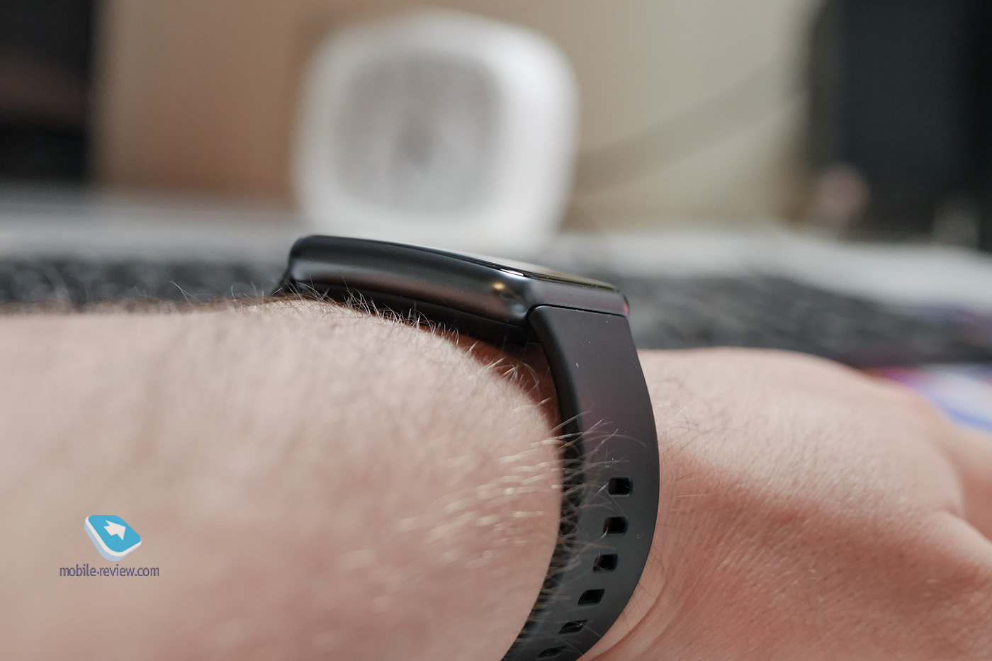 На правой части корпуса часов Huawei Watch Fit присутствует механическая кнопка. Ее размеры - 9х3 мм. Нажатие твердое, ход минимальный, звук клика не слышно. Вы чувствуете, как прожимается кнопка. Чуть выше нее можно заметить маленькое отверстие. Оказалось, что это микрофон для голосового ассистента! Но в России эта функция работать не будет. Собственно, поэтому проверить работу помощника не удалось. А жаль, был бы еще один козырь в пользу Watch Fit.