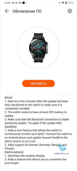 Время заряда часов Huawei – примерно 2.5 часа, часов Honor – около 4 часов. Фитнес-функции, здоровьеПо сути, перед вами типичные часы Huawei/Honor почти без изменений программного обеспечения. То есть здесь не исправили анимацию – она по-прежнему с небольшим количеством кадров и лагающим скроллингом списка. Лично меня это немного раздражает. Я готов лишиться пары дней работы устройства, но получить хотя бы 20-25 к/с анимации без тормозов.