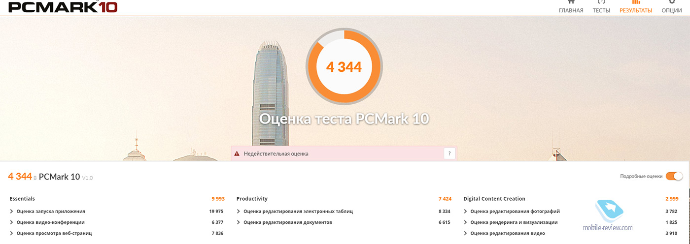 Говоря про производительность, нельзя не отметить, что ноутбук практически не греется при офисных делах. Пока проводил синтетические тесты, то есть заставлял работать по максимуму, заметил следующее. Зоны запястий остаются холодными. Верхняя часть клавиатуры становится ощутимо теплой, а вот с тыльной стороны рядом с решеткой вентиляции ноутбук нагревается значительно, что можно даже сказать «горячо». Мои не самые точные замеры показали температуру в 44 градуса на задней поверхности. Соответственно, вывод очевидный. Под максимальной нагрузкой не ставьте ноутбук на мягкое и закрывайте отверстия для выхлопа.