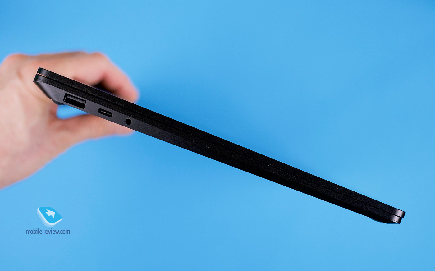 Нужно отметить, что у ноутбуков с цельнометаллическим корпусом и с отделкой алькантарой отличается конструкция клавиатуры. Металлический имеет прямоугольные грани, а с алькантарой — закругленные. Поэтому модель с отделкой алькантарой кажется тоньше в открытом состоянии.