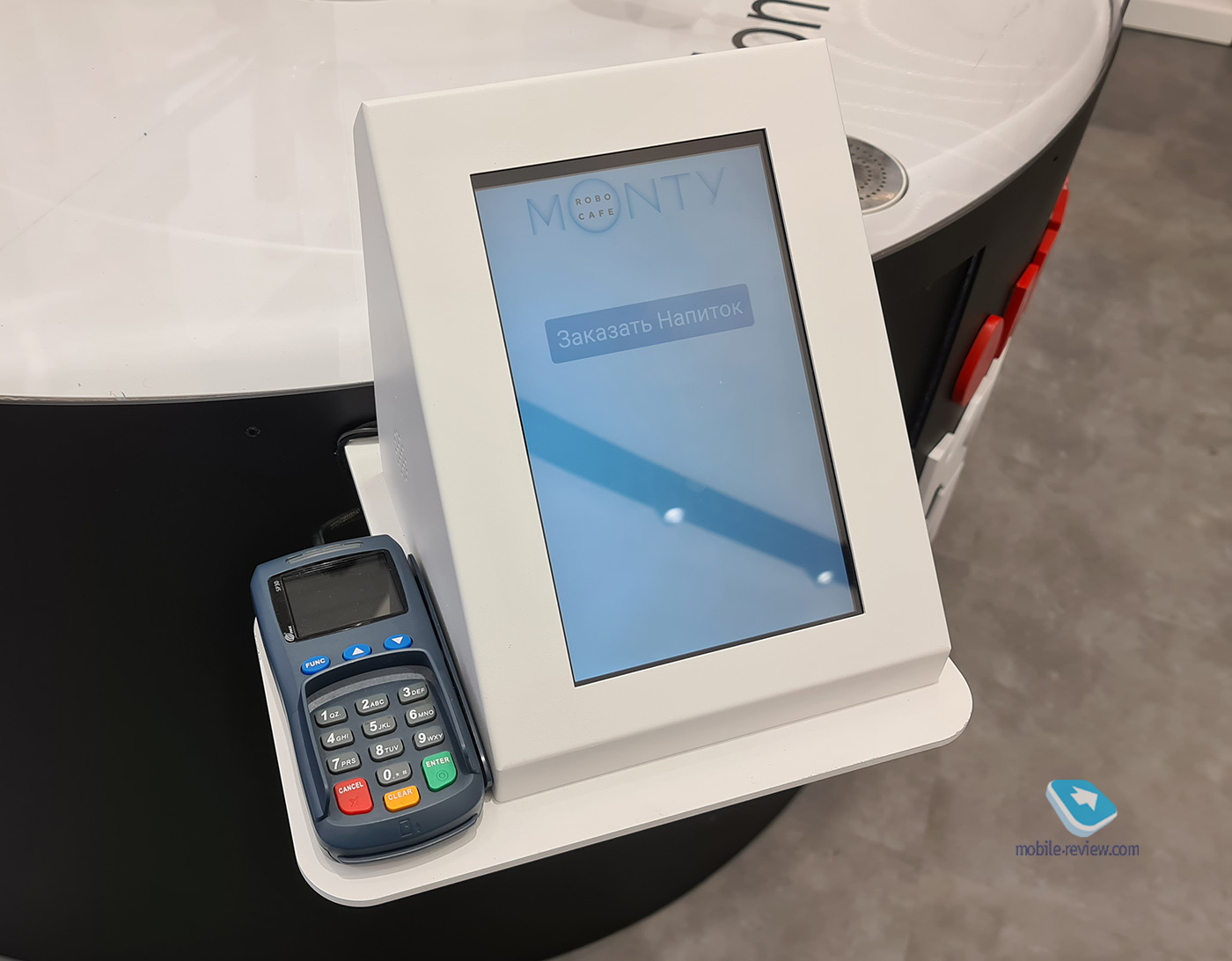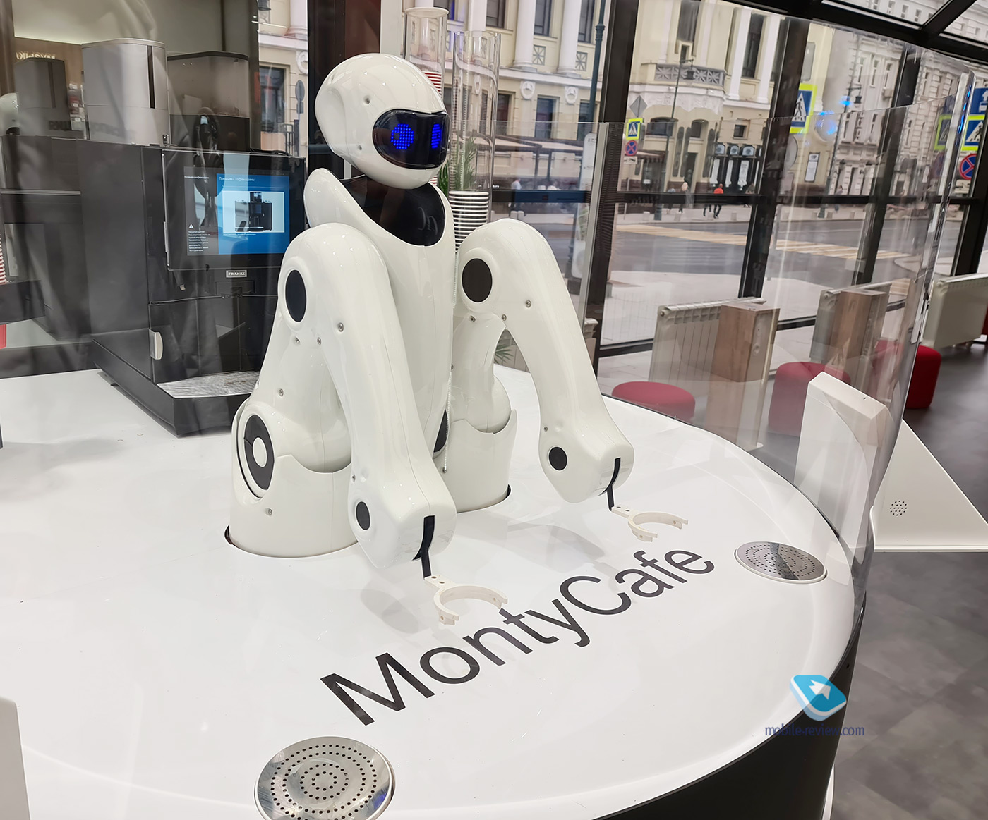 Два терминала для оплаты и выбора кофе, голосовые подсказки и только, разговаривать с ним нельзя. Весь аттракцион заключается в том, что вы оплачиваете картой кофе, а затем вам его варит обычная кофемашина, а манипулятор выдает стаканчик. Аттракцион средней руки, так как автомат большой, какого-то восхищения технологиями не вызывает. Места в магазине много, но даже с учетом этого то, сколько ушло под кофемашину с механическими руками, у меня вызывает вопросы. Не говоря про стоимость агрегата, за эти деньги можно было бы устроить что-то дельное, это как минимум года полтора-два на одного качественного продавца. А как сделать так, чтобы он устроил вам шоу и окружил вниманием, это отдельная история, правда, у нас так не умеет практически никто, и это обидно.