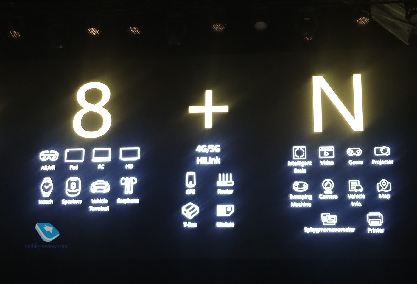 Ричард Ю особо сфокусировал свое внимание на том, что компания вкладывает больше денег в R&D, чем Apple или Intel. К слову, именно созданию собственной, независимой от Google экосистемы и была посвящена немалая часть презентации. Она получила заумное название "1+8+N": первое слагаемое означает смартфон (ключевую точку входа в экосистему), второе – другие устройства Huawei (ноутбуки, планшеты, носимые устройства и т.д.), а под буквой N понимаются связанные с экосистемой устройства других вендоров. Например, на презентации были показаны сценарии взаимодействия со сторонними устройствами "умного дома", которые поддерживают протокол Huawei HiLink: увлажнители, лампы, камеры и т.д.