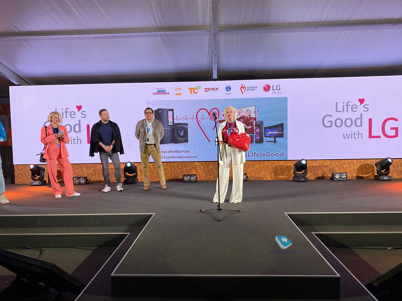 На выступлении Егора Кончаловского, к сожалению, побывать не удалось, но зато посетил выступление дизайнера Игоря Чапурина, который вместе с LG создал донорскую футболку LGXCHAPURIN с уникальным принтом в благодарность врачам и донорам. Особенностями дизайна являются бьющееся сердце, линия жизни и отпечаток пальца – это символ добра и надежды, ДНК того самого коллективного донора, который спасает жизни, делая это безвозмездно и ведя за собой. Из интересного для себя еще узнал, что горошинки на ткани, используемой дизайнером, вовсе не горошинки, а отпечатки пальцев сотрудников компании, в том числе там есть и отпечаток самого дизайнера.