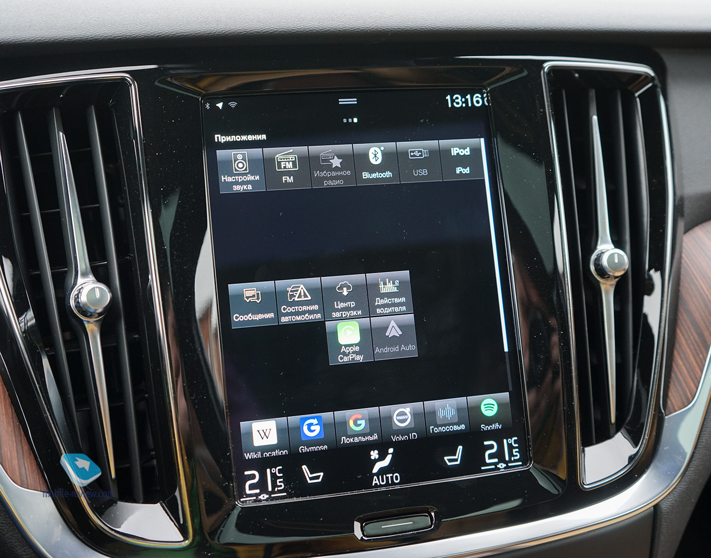 Текущее же решение вполне понятное и логичное, с тремя экранами. На первом находятся быстрые настройки автомобиля в виде иконок, второй, он же главный, предоставляет доступ к основным данным вроде навигации и проигрывателя в виде горизонтальных вкладок, которые можно развернуть, а на третьем экране находятся дополнительные данные. Все основные настройки скрыты в шторке по аналогии со смартфонами на Android. В целом, для тех, кто знаком с современными смартфонами, Sensus будет сразу понятен, здесь работают те же жесты, да и логика у меню схожа с мобильными устройствами. По скорости работы система не реактивная, но в целом вполне приемлемая, а некоторую задумчивость производитель скрыл анимацией. Пользователь может устанавливать дополнительные приложения в систему из набора, предложенного производителем. В списке есть погода, локальный поиск Google, который интегрируется в штатную навигацию, а также, например, программа TuneIn. Все приложения, а также карты штатной навигации можно обновить онлайн, также онлайн доступно и обновление медиасистемы. В качестве опции имеется возможность удалённого управления автомобилем со смартфона через приложение Volvo On Call, которое доступно и для Android, и для iOS. Эта программа позволяет не только посмотреть статистику, но и открыть или закрыть машину, осуществить удалённый запуск, увидеть местоположение автомобиля на картах в реальном времени, а также дать доступ к автомобилю родственникам или друзьям (привет, Apple Car Key). Недавно приложение обновилось, и теперь оно предоставляет владельцам гибридов информацию о том, какое расстояние они преодолели в чисто электрическом режиме, о расходе электроэнергии и топлива.