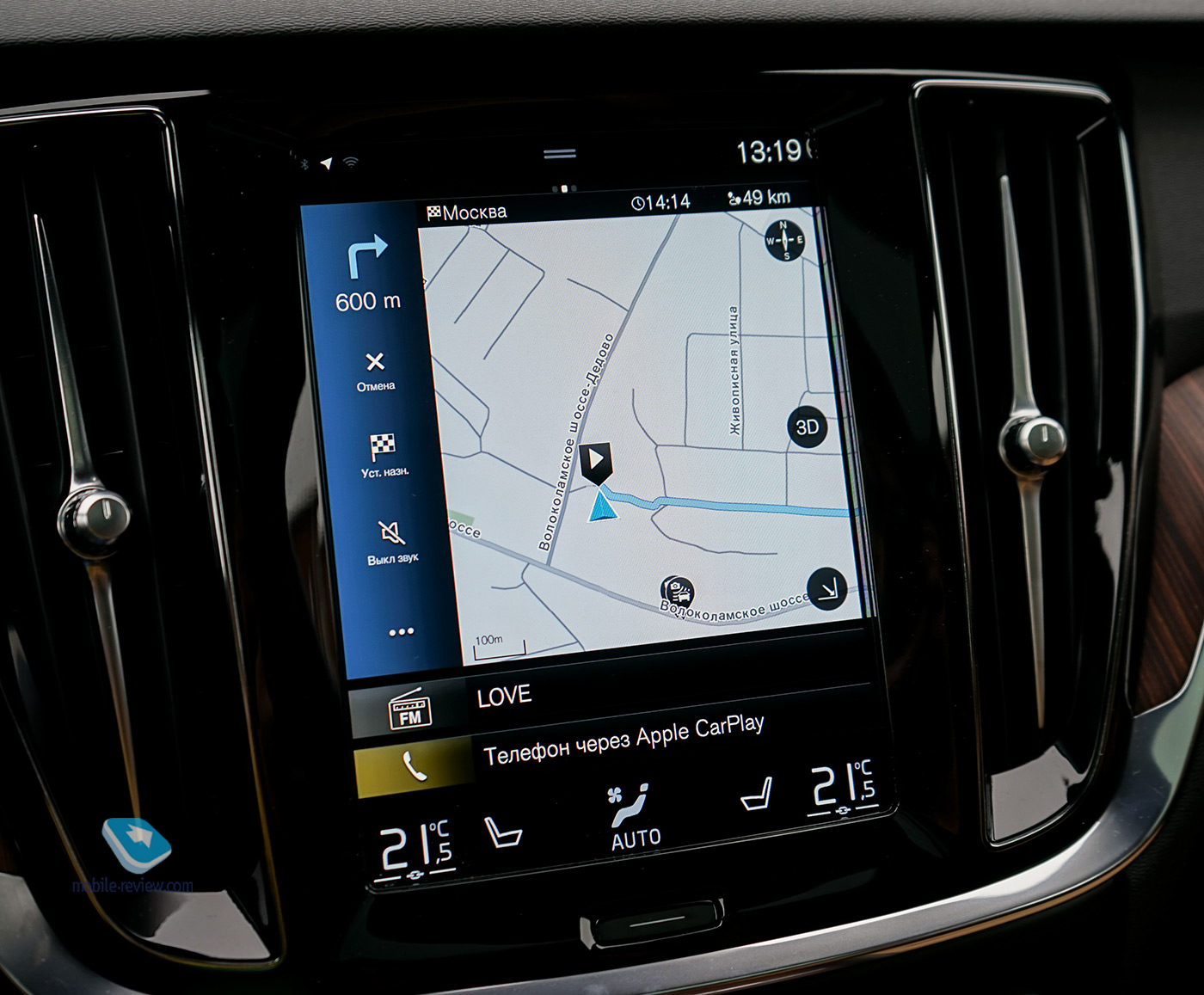 В V60CC установлена медиасистема Sensus с 9” сенсорным экраном с вертикальной ориентацией. Дисплей неплох по качеству, отзывчив, но вот разрешение экрана уже хотелось бы и повыше. Правда, в текущем поколении Volvo ничего не будет менять, на смену Sensus идёт новая система на базе ОС Android от Google, она уже была показана вместе с премьерой электрического кроссовера Volvo XC40 Recharge. В новой системе сохранится привычное оформление, но в остальном она будет совершенно другой.