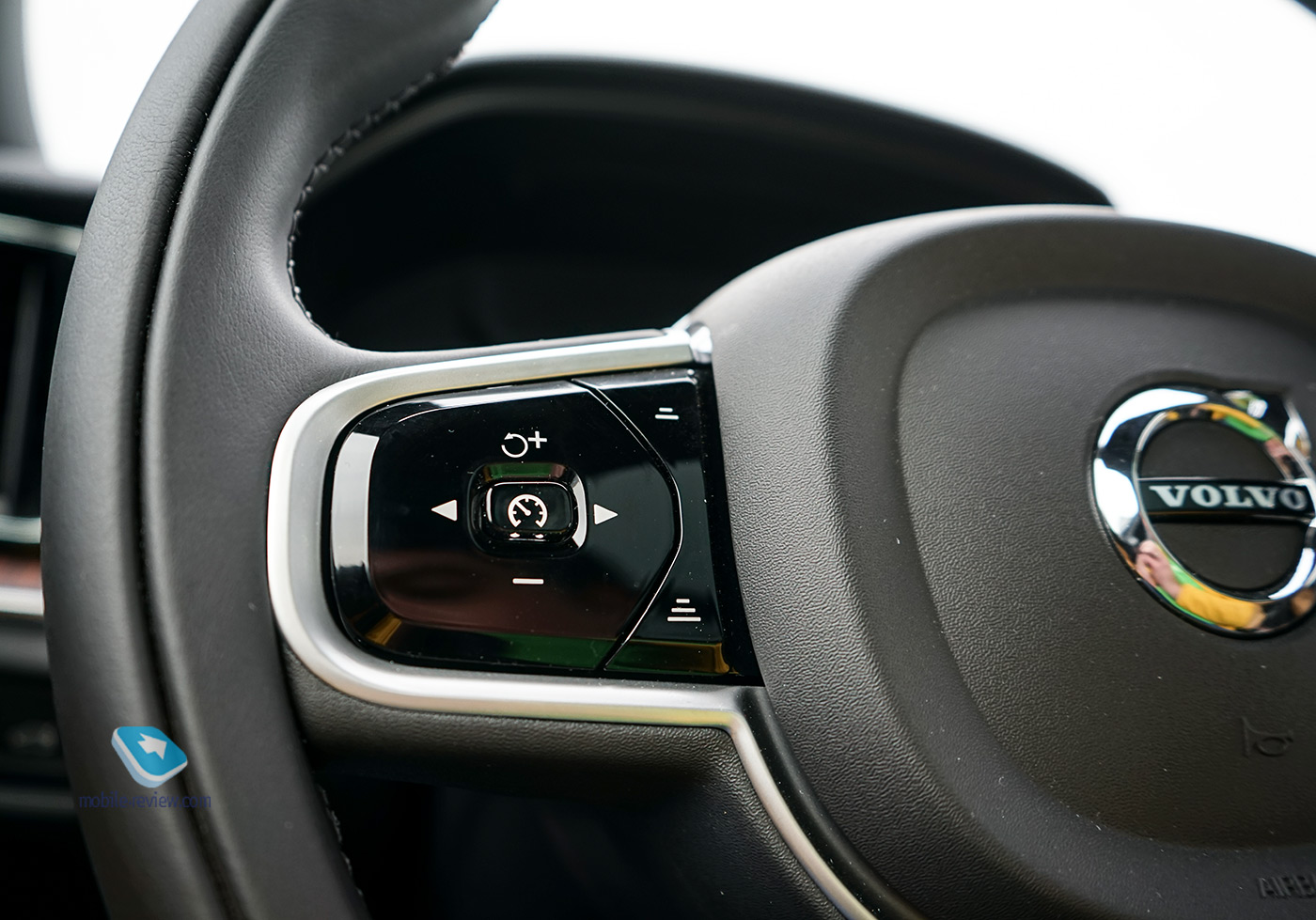Электронных помощников водителя в нашем тестовом автомобиле был полный набор. Отмечу отличную картинку с камер кругового обзора, благодаря чему парковаться даже в самых сложных местах становится значительно легче, и систему мониторинга слепых зон с визуальной индикацией в зеркалах, хотя крупные зеркала V60CC, поставленные на ножках, позволяют и без неё хорошо ориентироваться. А также систему предупреждения при движении задним ходом, которая позволяет избежать столкновения с перпендикулярно идущим транспортом. И, конечно, стоит отметить систему Pilot Assist, которая позволяет автомобилю двигаться практически в автономном режиме, неважно, в пробке или на трассе. Система одна из лучших на рынке, она хорошо реагирует на обстановку, плавно замедляя и ускоряя автомобиль, но при этом всегда держась в потоке. Всё управление лежит на глянцевых кнопках на руле, они выглядят плоскими, но благодаря крупным размерам ими легко управлять даже вслепую. Помощник позволяет на 10 секунд отпустить руль, но после этого попросит вас положить руки обратно на рулевое колесо. Но стоит учитывать, что Pilot Assist – это не полноценный автопилот, так что всё равно водитель должен быть всегда наготове, а помощник просто облегчает процесс вождения и позволяет избежать неприятностей, если вы немного отвлеклись.