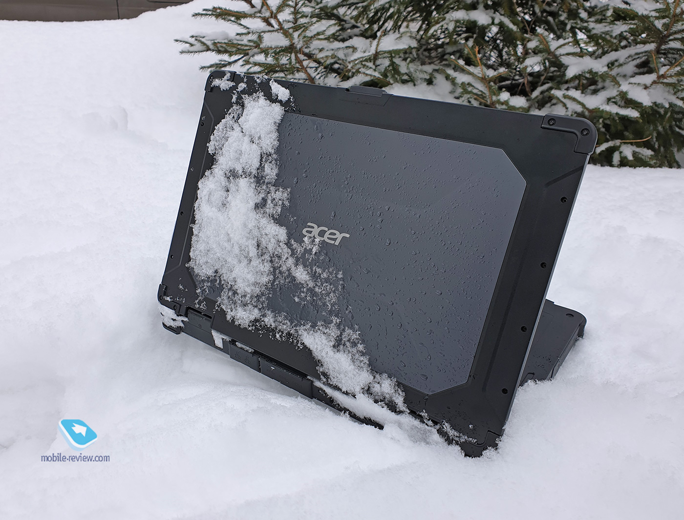 Внешний видНесмотря на мощную броню и общую массивность, идущую вразрез с трендом на ультратонкие гражданские ноутбуки, Acer ENDURO N7 по-своему красив. Глядя на него, испытываешь ощущения, как при виде какого-нибудь Land Rover Defender: не шутки шутить, а делом заниматься. Внешний вид обусловлен повышенной способностью выживать в самых сложных условиях. Корпус выполнен из металла и специального ударопоглощающего пластика. На углах находятся усиленные прорезиненные бамперы. Винты, которыми прикручены бамперы к корпусу, легкодоступны. Это сделано для того, чтобы бамперы после повреждения можно было легко заменить.