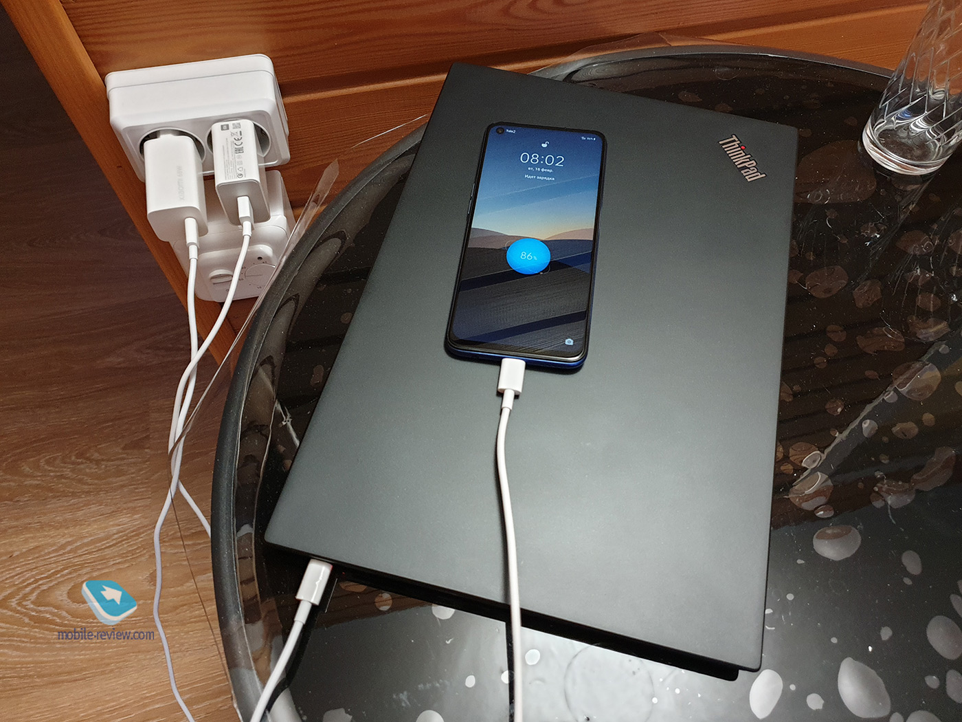 1.2-килограммовый ноутбук комплектуется адаптером на 65 Вт весом в полкило. Какое же это блаженство – вместо типичного кирпичика взять легкую и компактную зарядку. Использовал Mi 65W Fast Charger GaN Tech и для ноутбука, и для смартфона. Хотелось бы, чтоб на зарядке была пара Type-C разъёмов, чтобы можно было в случае чего одновременно заряжать или два телефона, или ноутбук со смартфоном.