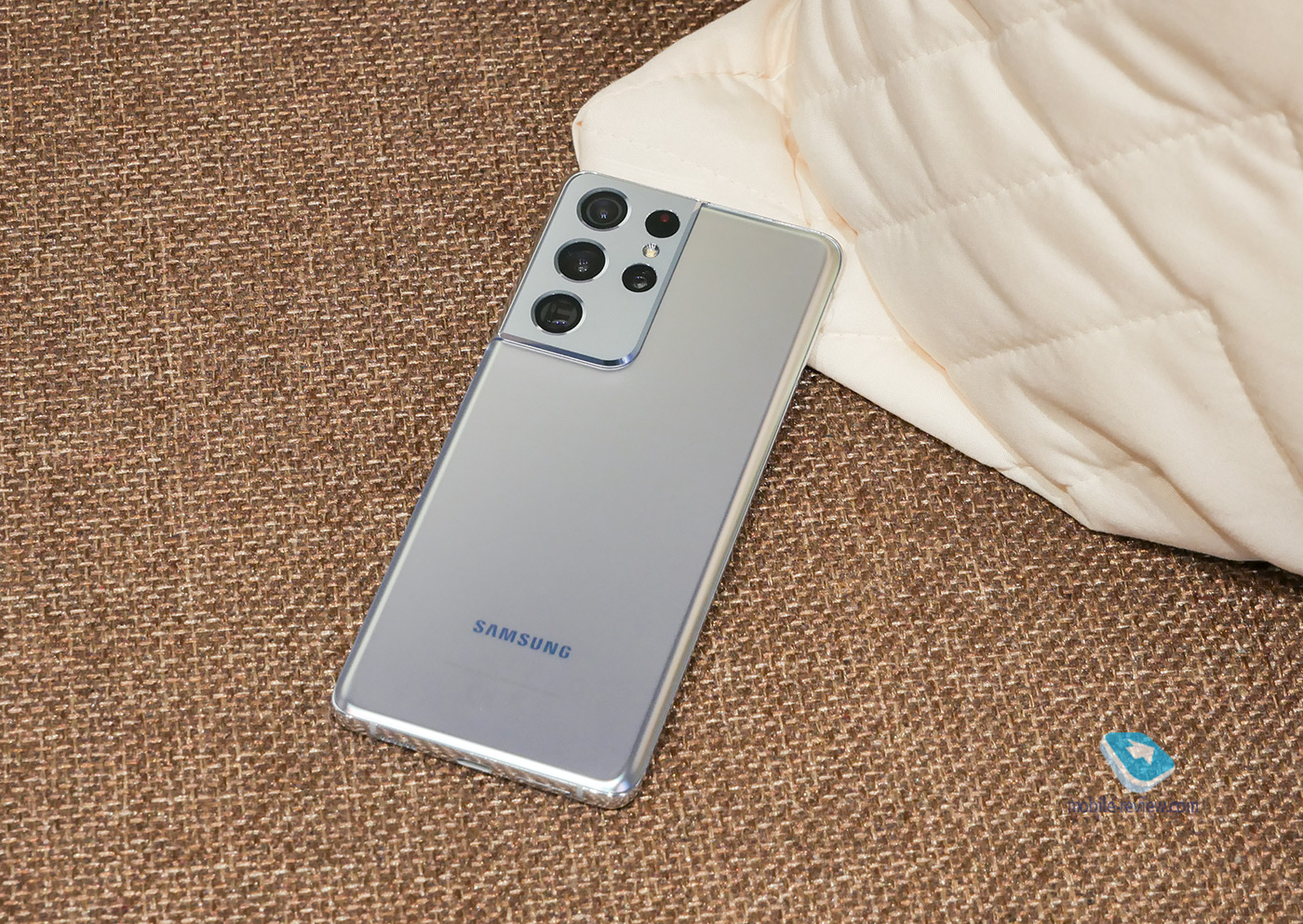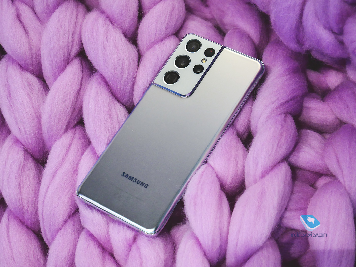В Ultra задняя панель из стекла, применяется сатинирование, очень приятный и хороший материал. В то же время S21/S21+ имеют корпус из армированного пластика (glastic), не вижу в нем особых изъянов, он приятен внешне и на ощупь. Но многие стонут о том, что это не премиальный материал, хотели бы видеть здесь стекло. На мой вкус, материал вполне износостойкий, приятный в руках, но хотелось бы видеть стекло, как в Ultra, но из соображений стоимости от него отказались. Galaxy S21 Ultra: