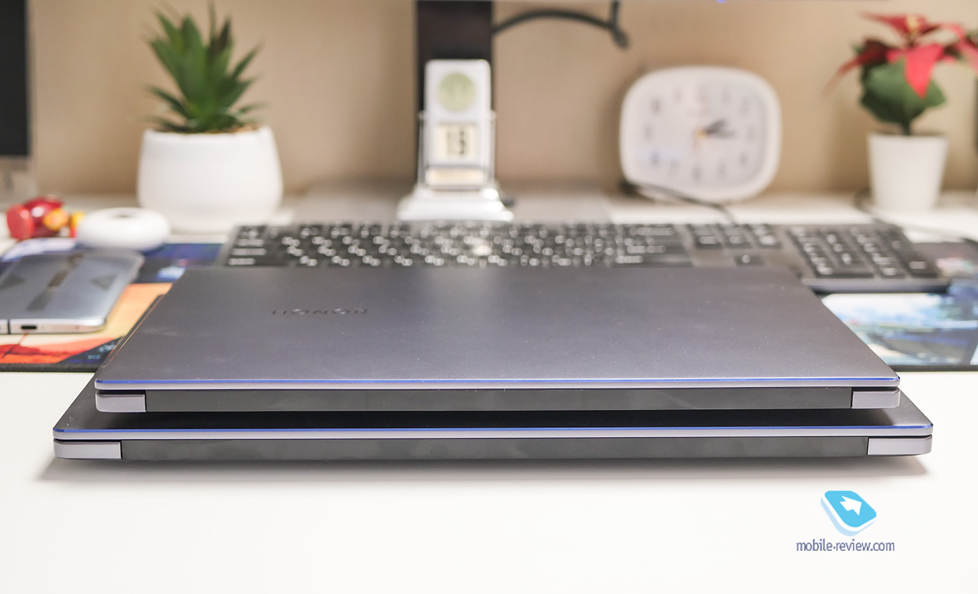 Возвращаясь к Honor MagicBook 14/15. Первое, на что обращаешь внимание, – габариты. Даже если не заглядывать в спецификации, заметно, что версия MagcBook 15 значительно больше версии MagicBook 14. Хотя, казалось бы, разница между 14- и 15.6-дюймовыми должна быть минимальной.