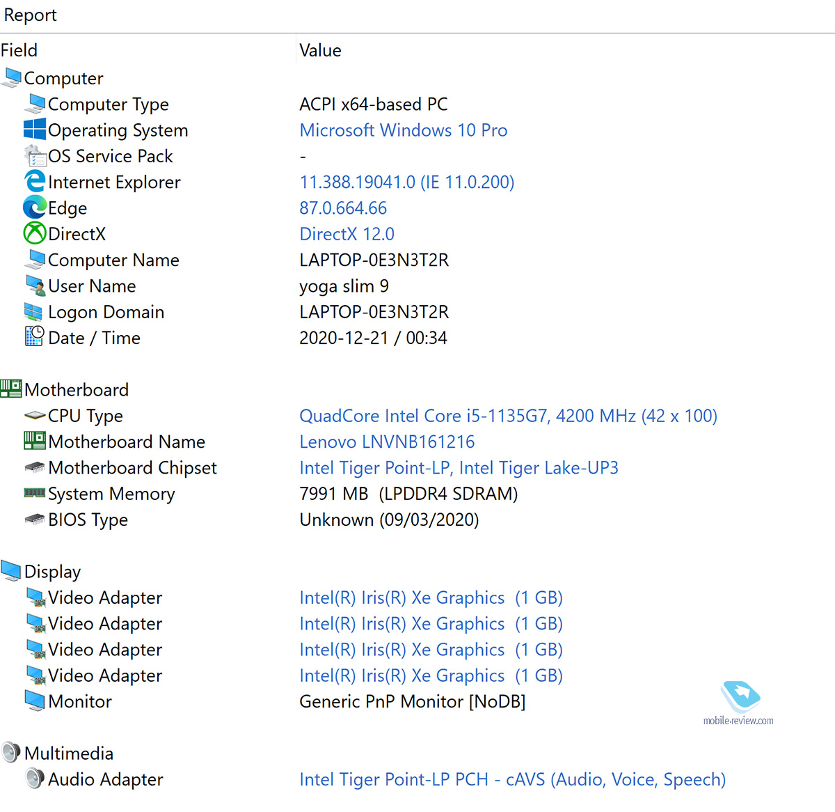 Технология настолько хороша, что если не вдумываться, то сложно догадаться, что тачпад не нажимается. Когда описал свои впечатления от тачпада в подборке гаджетов за декабрь, то сразу получил в комментариях, что у Apple уже давно так. Так, да не так. На мой вкус, реализация Lenovo более реалистична по ощущениям. В качестве минуса тачпаду можно записать размер – 10.5 на 6.5 см. Если по высоте тачпад больше не сделать, то можно было бы сделать его шире (13-15 см). Большие тачпады – это, во-первых, модно, во-вторых, практично, ведь Windows всё лучше понимает жесты. ПроизводительностьЗа производительность в ноутбуке отвечает процессор 11-го поколения от Intel, выполненный по техпроцессу 10 нм. Одно из главных преимуществ 11-го поколения – это новая мощная интегрированная графика. Представляя 10-е поколение, в Intel говорили, что теперь появится возможность запускать ААА-игры в разрешении 720p. Теперь же сказали, что можно запускать ААА-игры уже в Full HD. Тут следует понимать, что имеются в виду самые низкие настройки качества графики.