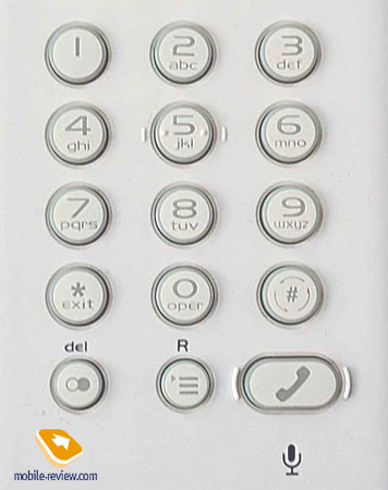 The keys placed on the top plate of the cube are the numeric buttons, shortcut to recently dialed numbers, pick/hang up key and a functional key, which serves for bringing up the list of operation modes (farther navigation can be done with the help of the aforementioned navi-circle).