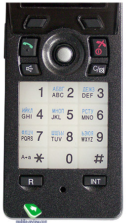 Чуть ниже расположен блок из пятипозиционного джойстика средних размеров и четырех кнопок, размещенных по бокам от него. Джойстик отвечает за перемещения по меню, телефонной книге и списку вызовов, на кнопки возложены функции посыла и сброса вызова, активации громкой связи, удаления последнего введенного символа и временного отключения микрофона. За счет крупного размера джойстика с ним удобно работать, он четко фиксирует нажатия и практически не допускает ложных срабатываний. Соседние кнопки разнесены на достаточное расстояние и выступают из корпуса на такую высоту, чтобы обеспечивать удобную работу на ощупь. Цифровые клавиши имеют любопытную организацию: они выполнены в виде единого блока из прорезиненного пластика, разделение кнопок произведено за счет небольших желобков. Подобная организация клавиш выглядит свежо и необычно, однако не является чисто дизайнерским ходом, как это часто бывает и обычно ассоциируется с неудобством работы. Кнопки удобно нажимать, точность срабатывания находится на достойном уровне и претензий не вызывает. Чуть ниже находятся две небольшие функциональные кнопки для постановки паузы в набор и вызова других подключенных к базовому блоку трубок по внутренней связи. Цифровой блок клавиш снабжен подсветкой, она достаточно яркая и часто пригождается при домашнем использовании. Схема управления TCD805 выполнена с учетом наработок других моделей линейки и практически не отличается от других моделей. Естественно, времени на ее освоение не требуется, она интуитивно понятна пользователям любых современных телефонов. Дисплей и менюАппарат снабжен цветным дисплеем средних размеров с вертикальной ориентацией. Технических характеристик дисплея производитель не приводит, по визуальному впечатлению можно сделать предположение о том, что дисплей имеет разрешение в 128 на 160 пикселей и отображает до 4096 цветов и оттенков. Качество изображения находится на добротном среднем уровне, здесь стоит учитывать, что телефон предназначен для использования в помещении и не должен обладать дисплеем с высокой яркостью. С возложенными на него задачами дисплей эффективно справляется. В помещении картинка четко видна и разборчива, системный шрифт сбалансирован с разрешением так, чтобы в надписи не приходилось вглядываться.