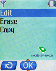 Меню телефона выполнено в виде матрицы из шести значков, каждый из которых представляет собой самостоятельный раздел и относится к определенной стороне работы аппарата. Оно включает в себя разделы и пункты Caller List, Ringer Setup, Time Settings, Handset Setup, Base Unit Setup, Display Setup.